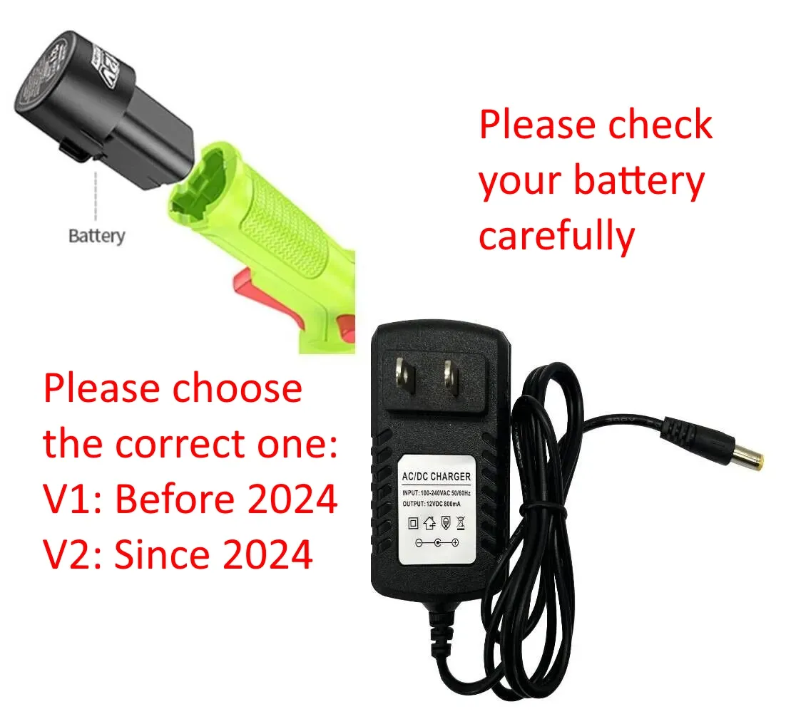 Please be aware that there are two version of batteries and chargers for GardenJoy 12V grass trimmers.